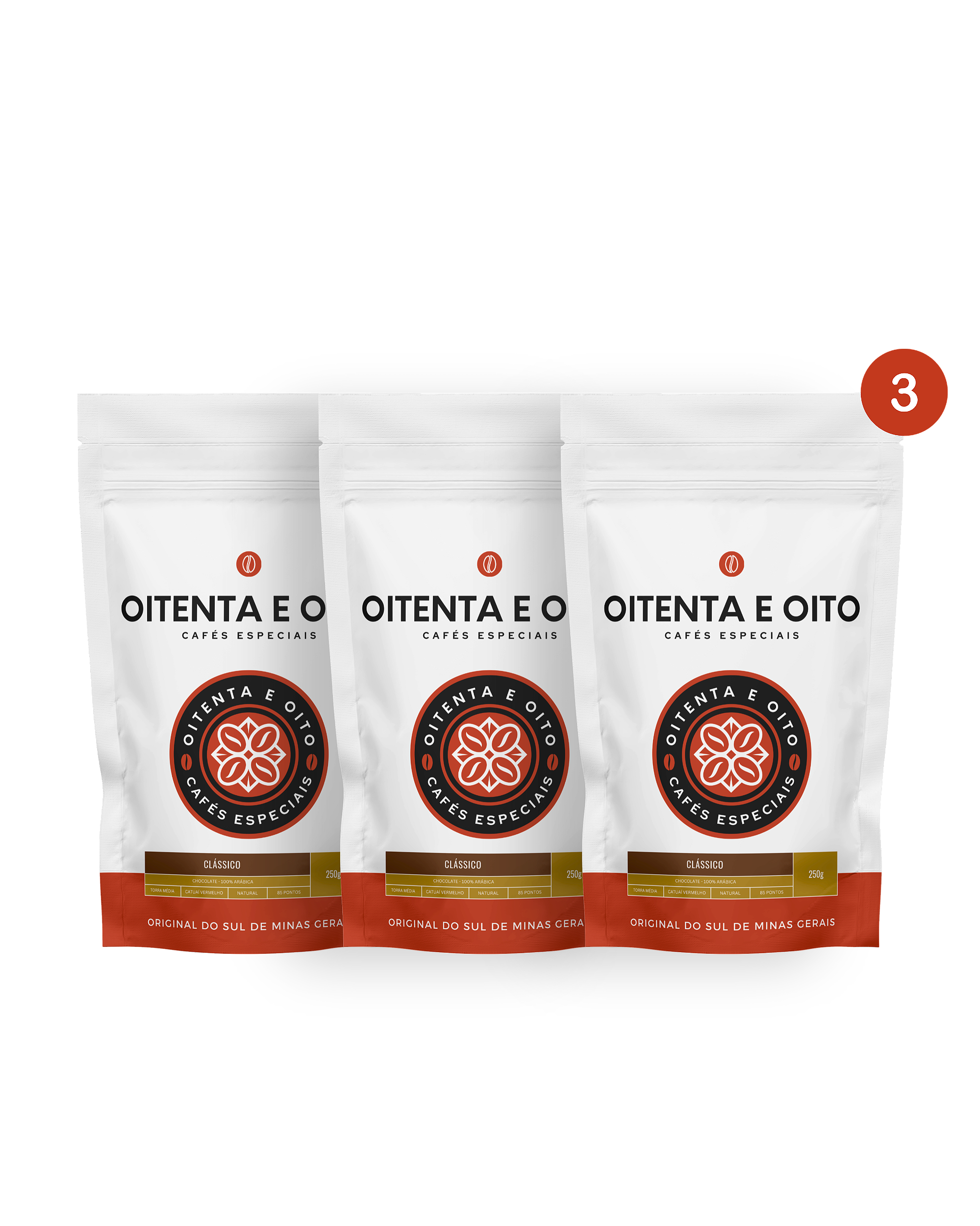 O Clássico é o principal destaque da nossa linha de especiais. Cheio de vida e sabor, tem notas sensoriais de Chocolate. É perfeito para quem gosta de um cafezão sem frescura, intenso e que pode ser consumido todos os dias e a qualquer hora. Cultivado em Muzambinho no Sul de Minas, possui pontuação de 85 pontos SCA. Leve o combo 3 unidades e garanta o melhor do café especial do Sul de Minas.